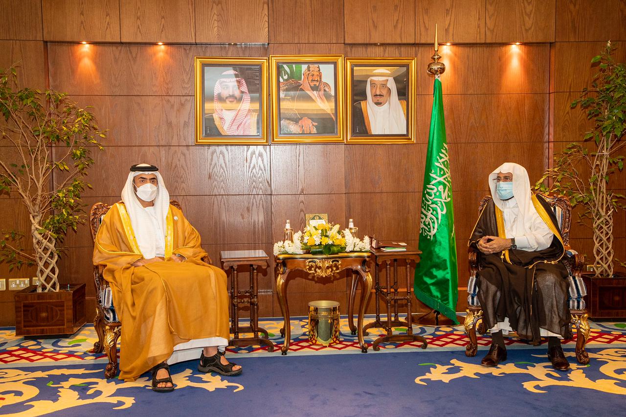ورحب معاليه بسعادة سفير دولة الإمارات، وهنأه على تعيينه سفيراً لدى المملكة، منوهاً بقوة ومتانة العلاقة الأخوية التي تربط البلدين الشقيقين.