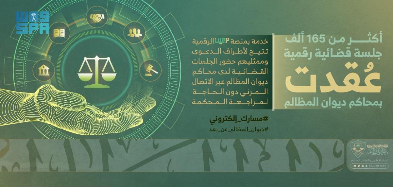 أكثر من 165 ألف جلسة قضائية رقمية عقدت في محاكم ديوان المظالم