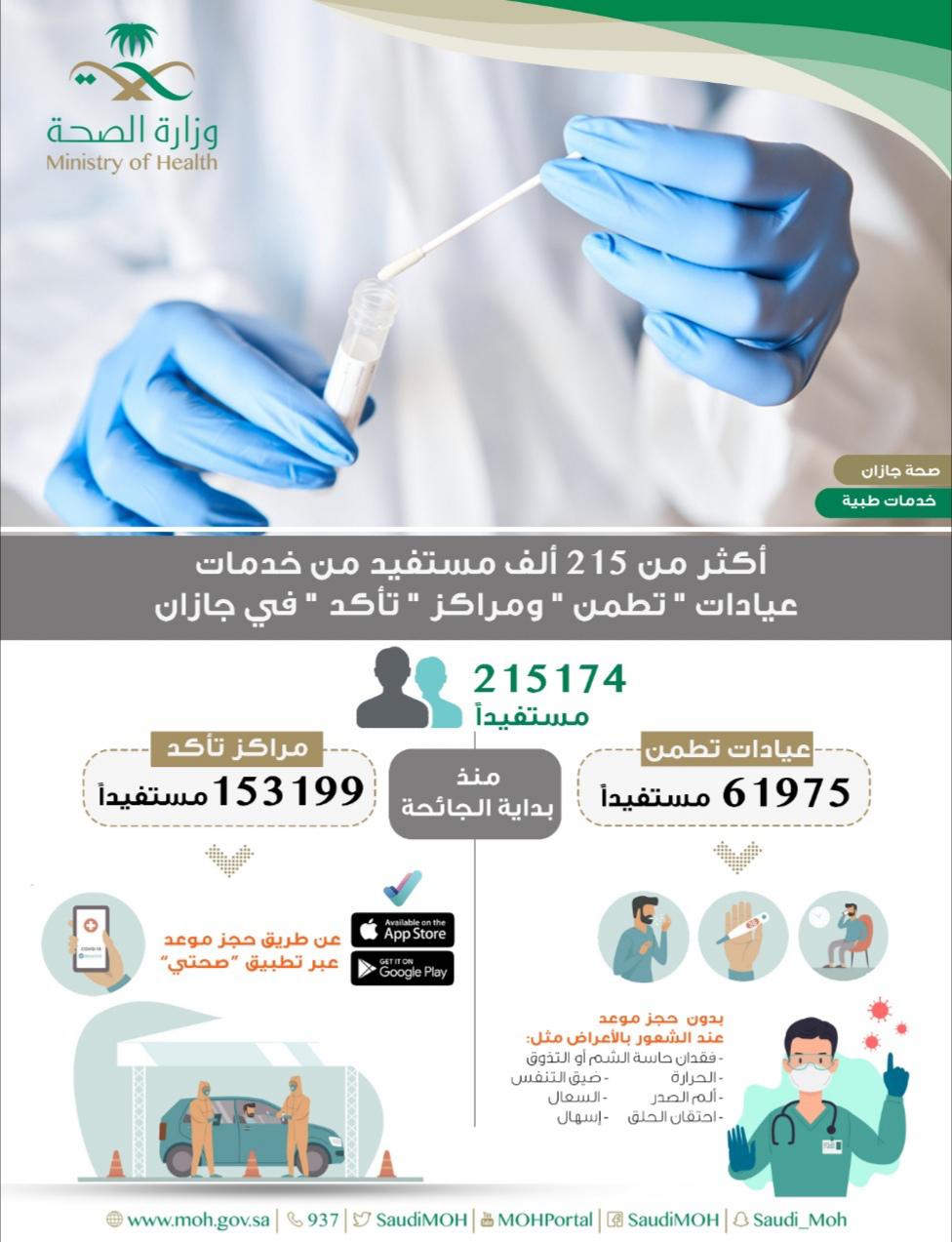 أكثر من 215 ألف مستفيد من خدمات عيادات “تطمن” ومراكز “تأكد” في جازان