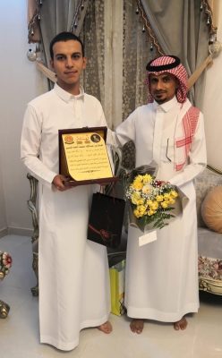 وقدم له هدية وذلك بحضور والده محمد احمد قيسي رئيس قسم النظافة ببلدية محافظة الطوال وقدم له التهنئة والهدية بمناسبة تخرجه ملازم متمنياً له التوفيق والسداد لخدمة الدين ثم المليك والوطن .