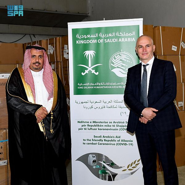 سلّم مركز الملك سلمان للإغاثة والأعمال الإنسانية أمس الدفعة الأولى من المعدات والمستلزمات الطبية المقدمة من حكومة المملكة العربية السعودية لجمهورية ألبانيا وتشمل 23 جهازا للتنفس الاصطناعي، وذلك لمكافحة فيروس كورونا المستجد (كوفيد – 19).