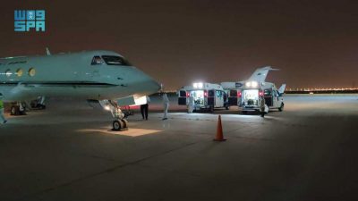 ووصلت طائرة الإخلاء الطبي الجوي إلى قاعـدة الملك سلمان الجوية بالرياض، بعد رحلة استغرقـت (15) ساعة، مع اتخاذ كافة الإجراءات الاحترازية المتبعة لمكافحة انتشار فيروس كورونا.