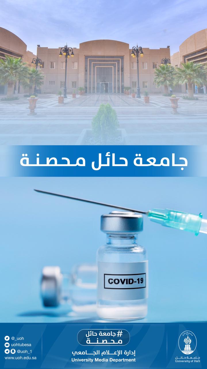 أطلقت جامعة حائل حملة تحت شعار(#جامعة حائل محصنة)، وتهدف إلى تعزيز الوعي المجتمعي بضرورة أخذ اللقاح للحد من انتشار فيروس كورونا.