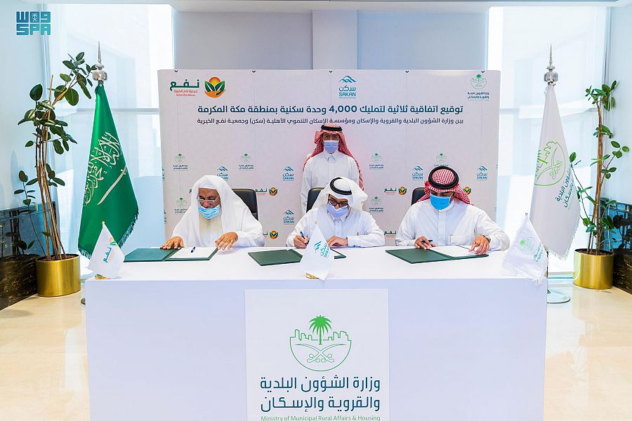 وقّع برنامج الإسكان التنموي اتفاقية ثلاثية الأطراف مع جمعية نفع الخيرية بمنطقة مكة المكرمة ومؤسسة الإسكان التنموي الأهلية “سكن”، بهدف توفير 4000 وحدة سكنية للأسر الأشد حاجة بمنطقة مكة المكرمة لتمكينهم من تملك المسكن، وذلك بحضور معالي وزير الشؤون البلدية والقروية والإسكان الأستاذ ماجد بن عبد الله الحقيل.