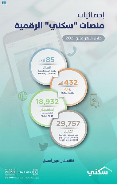 منصّات “سكني” الرقمية تواصل تقديم خدماتها السكنية خلال مايو 2021