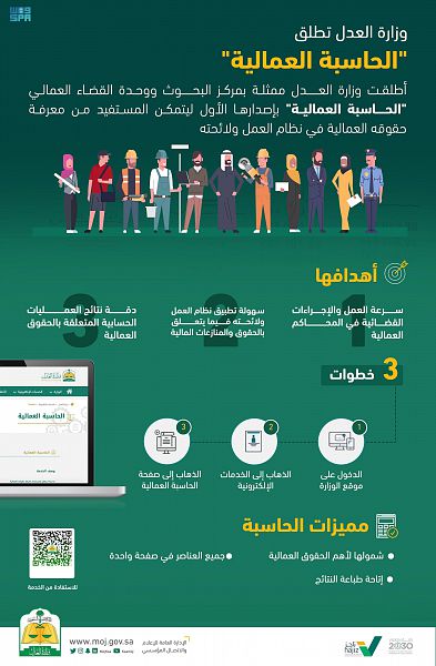 وتتميز “الحاسبة العمالية” التي تستهدف القضاة وأطراف الدعوى والعاملين في مركز تهيئة الدعاوى، بشموليتها لأهم الحقوق العمالية، وسهولة استخدامها، وسرعة الوصول إلى التبويبات في صفحة واحدة، بالإضافة إلى إتاحة عنصر الطباعة لجميع النتائج بهدف التسهيل على المستخدمين.