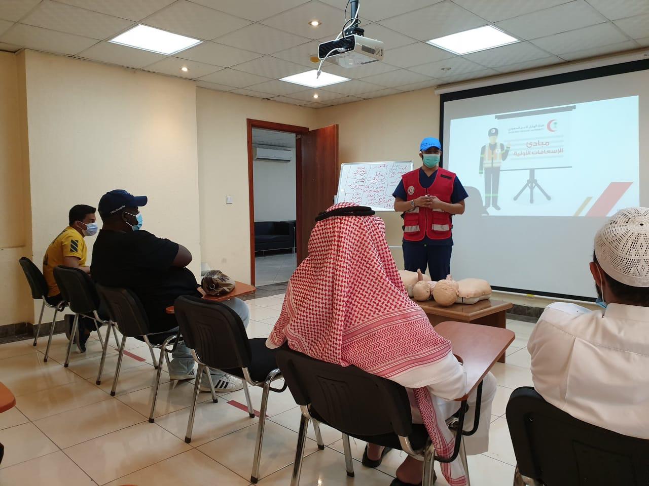 وتحرص الهيئة بمنطقة مكة المكرمة من خلال مراكز التدريب في ( جدة – العاصمة المقدسة – الطائف ) علي تأهيل وتدريب كافة افراد المجتمع علي الإسعافات الأولية من خلال برنامج الأمير نايف للإسعافات الأولية للجنسين ( رجال – نساء ) وكافة الاعمار و يحصل فيها المتدرب او المتدربة على شهادة معتمدة وبطاقة مسعف أولي معتمدة من هيئة الهلال الأحمر السعودي كما تقدم الهيئة المحاضرات التوعوية للتثقيف المجتمعي في هذا المجال .