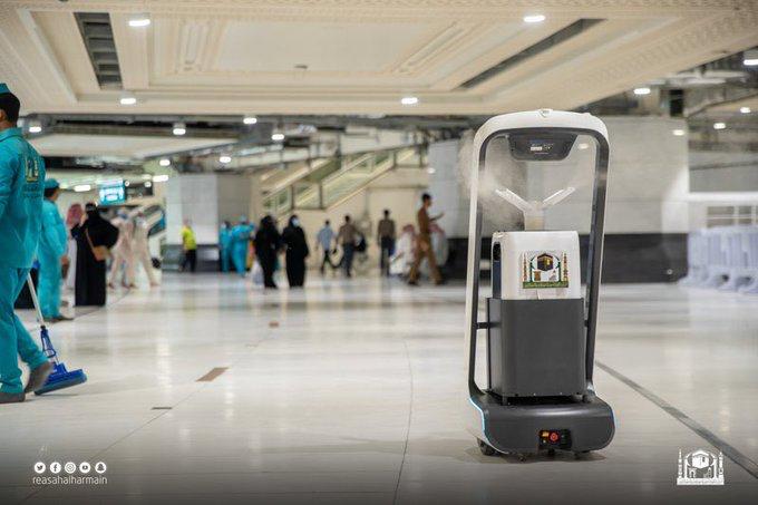 قامت الرئاسة العامة لشؤون المسجد الحرام والمسجد النبوي، بتوفير عدد (10) روبوتات للتعقيم داخل المسجد الحرام، حيث عملت وكالة الشؤون الفنية والخدمية ممثلة في إدارة الوقاية البيئية ومكافحة الأوبئة على دعم منظومة التعقيم في المسجد الحرام وتوفير الروبوتات لتعقيم مساحات أوسع وتغطية جنبات المسجد الحرام، وتعمل الروبوتات بنظام تحكم آلي مبرمج على خريطة مسبقة وعلى (6) مستويات؛ ما يحسّن سلامة الجو الصحي البيئي وتحليل متطلبات التعقيم بذكاء، وفقاً لسيناريوهات الاستخدام، ومسار التعقيم، والمدة المخططة بشكل مستقل لتغطية كاملة للفضاء البيئي.