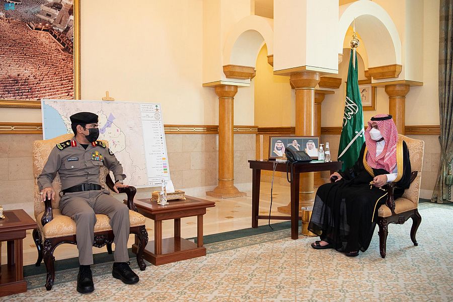 واستمع سموه إلى شرح عن أعمال شرطة المنطقة، خصوصاً ما يتعلق بمراقبة تطبيق الإجراءات الاحترازية للحد من انتشار فيروس كورونا بالتعاون مع الجهات ذات العلاقة.