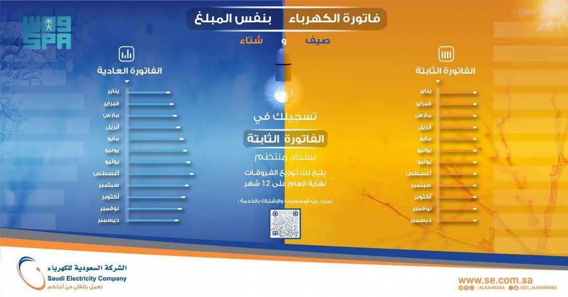 الشركة السعودية للكهرباء: “الفاتورة الثابتة” تسهل الدفع على المشترك وتنظم استهلاكه من الكهرباء