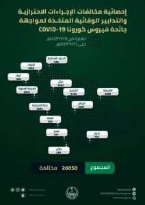 أخبار محلية > الداخلية: 26050 مخالفةً للإجراءات الاحترازية والتدابير الوقائية من فيروس كورونا