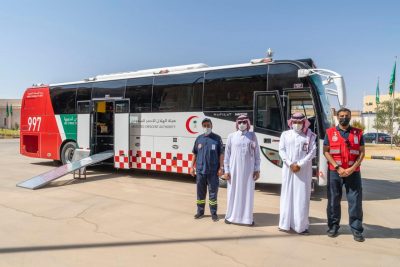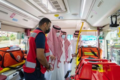 واطّلع سموه على مؤشرات الأداء ورضا المستفيدين من خدمات الفرع، كما دشن حافلة الكوارث “وحدة الإصابات المتعددة”.