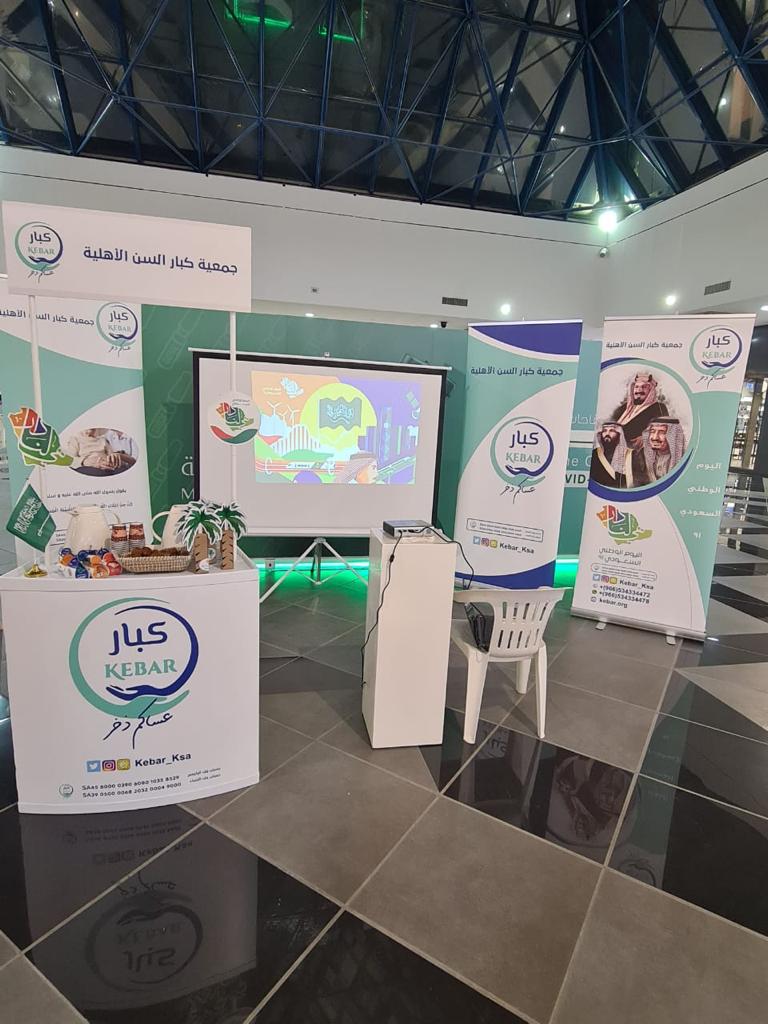 قامت جمعية كبار بالمشاركة في احتفالات اليوم الوطني ٩١ وذلك في صحاري مولي بتقديم الضيافة السعودية وعرض فديو عن اليوم الوطني وتعريف بالجمعية من خلال لافتات ومنشورات وقد توافد الكثير من زوار المول لركن الجمعية واشاد الجميع با اهداف وتوجيهات الجمعية وتم توزيع عدد من الهدايا التي تعبر عن الفرحة بهذا اليوم العزيز على كل السعودين هذا وقد اوضحت المديرة التنفيذية لجمعية الاستاذة نورة الفايز ان هذه المشاركة بناء على توجيه رئيس مجلس الإدارة الاستاذة ندى البواردي وتاييد من اعضاء مجلس الإدارة من اجل توضيح الدور الحيوي الذي تقوم به الجمعية في المجتمع