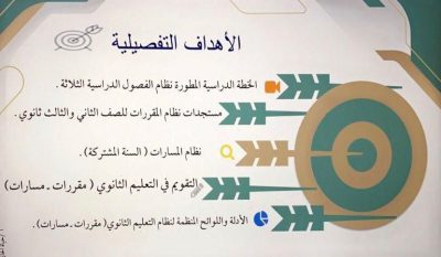خرج اللقاء بعدة توصيات أبرزها التطبيق الأمثل لنظام المقررات و المسارات في مدارس المرحلة الثانوية مع ما يتفق مع التطورات والمستجدات التربوية في الميدان.
