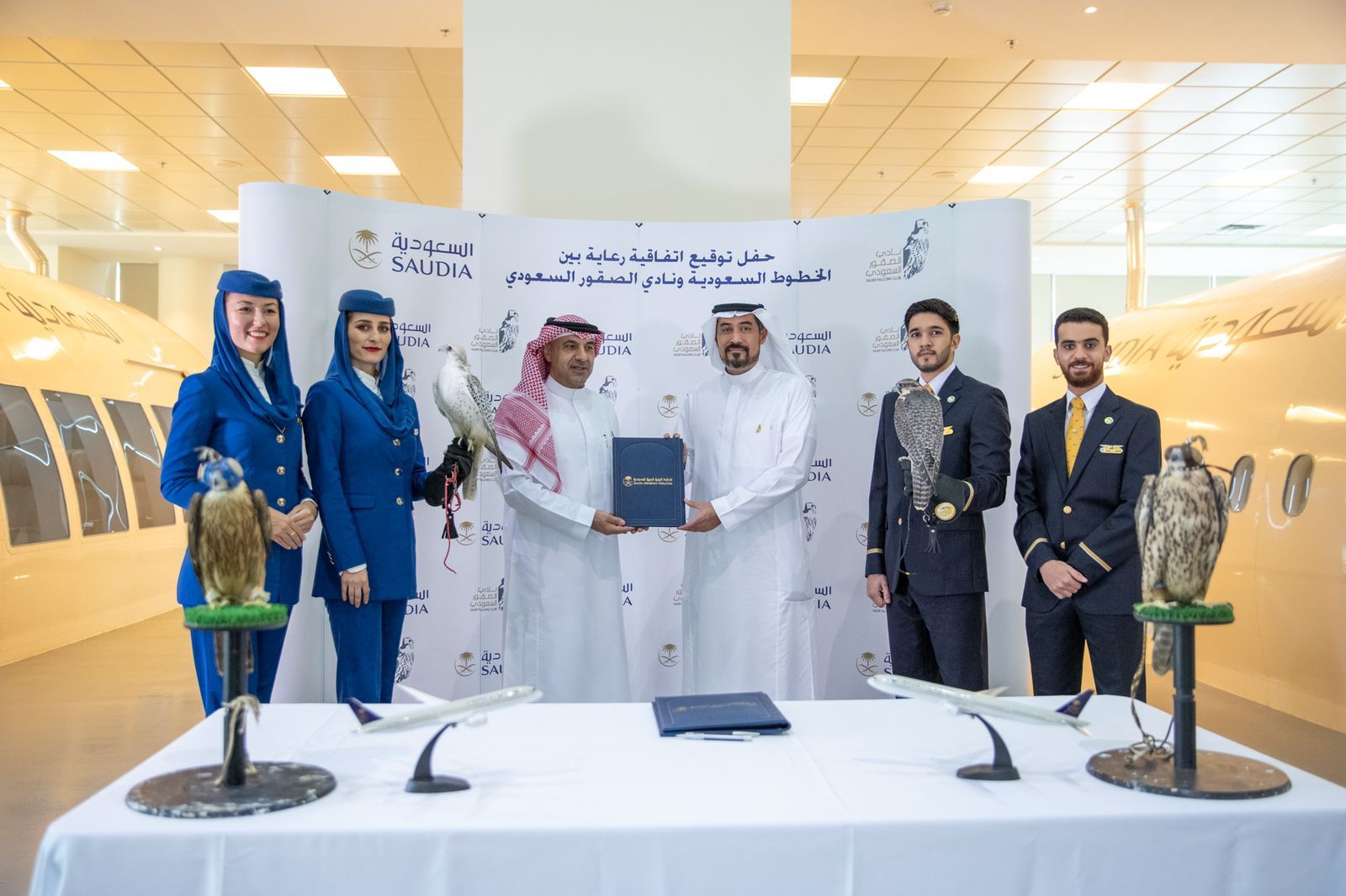 ووقع الاتفاقية في مقر أكاديمية الأمير سلطان لعلوم الطيران بمدينة جدة كل من عضو مجلس إدارة نادي الصقور السعودي عضو اللجنة التنفيذية بالنادي ناصر بن راشد الناصر، ونائب الرئيس للتسويق وإدارة المنتج بشركة الخطوط السعودية للنقل الجوي عصام محمد أخونباي.