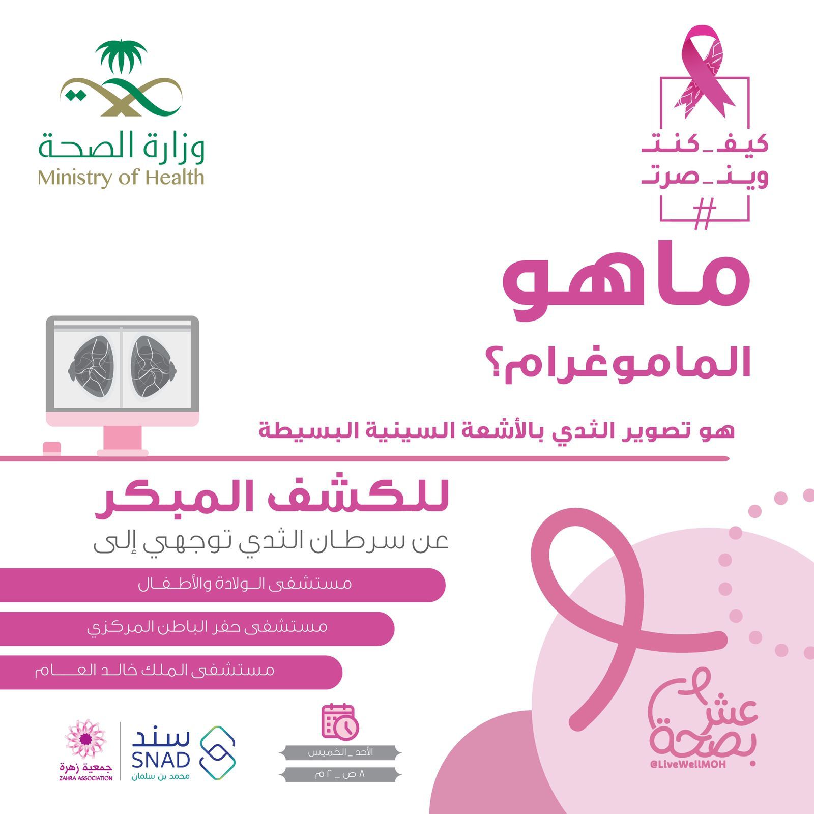 كما ستقام في جميع المراكز الصحية والمستشفيات إضافة إلى المراكز التجارية مع تجهيز العديد من المواقع للكشف المبكر عن سرطان الثدي ويأتي هذا الإجراء في سياق سعى صحة حفر الباطن إلى رفع مستويات الوعي لدى النساء بضرورة إجراء الفحص المبكر لسرطان الثدي.