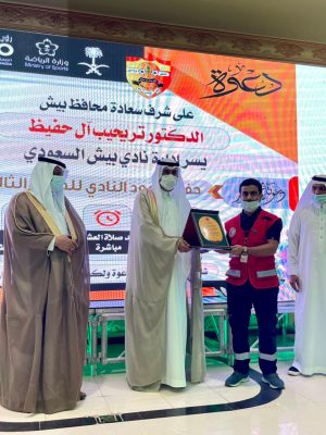 وثمّن رئيس نادي بيش دعم و تشجيع وتحفيز المحافظ واهتمامه الدائم بالنادي لبذل قصارى الجهد للصعود للدرجة الثانية، معبراً عن تقدير جميع منسوبي النادي وشكرهم نظير جهوده الدائمة بعده قام المحافظ ومدير مكتب الرياضة بجازان ورئيس نادي بيش بتكريم الداعمين من الأهالي على دعمهم لخدمة أبناء النادي