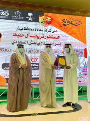 أخبار الرياضة > آل حفيظ يدعم النادي بخمسون الف بريال محافظ بيش يرعى حفل النادي للصعود للدرجة الثالثة