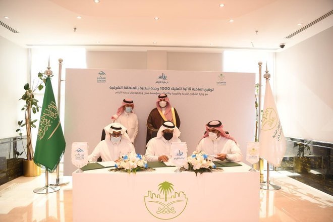 بحضور الأمير تركي بن محمد بن فهد وزير الدولة عضو مجلس الوزراء رئيس مجلس إدارة جمعية بناء لرعاية الأيتام بالمنطقة الشرقية، ووزير الشؤون البلدية والقروية والاسكان الأستاذ ماجد الحقيل، وقّعت وزارة الشؤون البلدية والقروية والإسكان اتفاقية مع كل من مؤسسة الإسكان التنموي الأهلية “سكن” والجمعية الخيرية لرعاية الأيتام بالمنطقة الشرقية (بناء)، بهدف توفير 1000 وحدة سكنية للأسر الأشد حاجة لتُمَكِنهم من تملك المسكن الملائم.