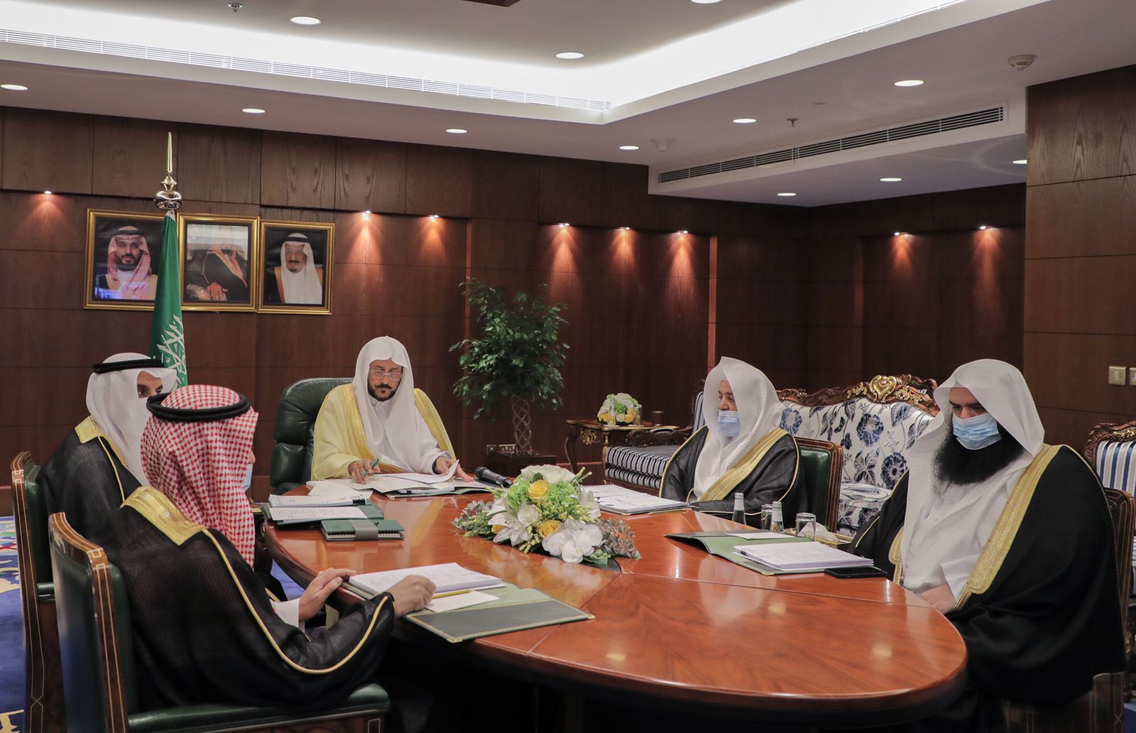 رأس معالي وزير الشؤون الإسلامية والدعوة والإرشاد الشيخ الدكتور عبداللطيف بن عبدالعزيز آل الشيخ وفد المملكة المشارك في أعمال الاجتماع السابع لأصحاب المعالي والسعادة الوزراء المسؤولين عن الشؤون الإسلامية والأوقاف بدول مجلس التعاون لدول الخليج العربية الذي عقد عبر الاتصال المرئي اليوم الأربعاء السابع من شهر ربيع الأول لعام 1443هـ، وتترأس دورته مملكة البحرين الشقيقة، وبحضور معالي الأمين العام لمجلس التعاون الدكتور نايف بن فلاح الحجرف.