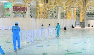 بدأت الرئاسة العامة لشؤون المسجد الحرام والمسجد النبوي إزالة ملصقات التباعد الجسدي داخل المسجد الحرام وأروقته وساحاتها ومرافقه، وذلك مواكبةً لقرار تخفيف الإجراءات الاحترازية وعودة الحرمين الشريفين لاستقبال القاصدين والزوار بكامل طاقتهما الاستيعابية.