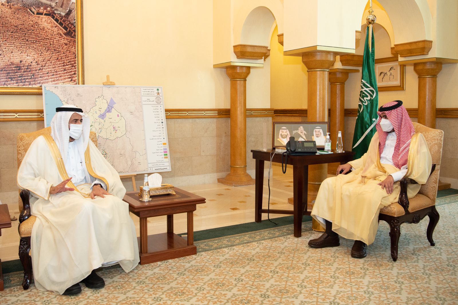 استقبل أمير منطقة مكة المكرمة بالنيابة صاحب السمو الملكي الأمير بدر بن سلطان في مقر الإمارة بجدة، معالي وزير الحج والعمرة الدكتور توفيق الربيعة