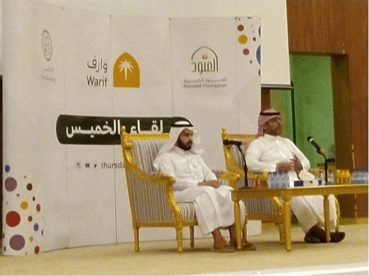تحت رعاية عميد الكلية سعادة الدكتور عبد الرحمن بن عبيد الرفدي، نظمت كلية التربية بالخرج بالتعاون مع مركز العنود لتنمية الشباب “وارف” التابع لمؤسسة “العنود” الخيرية، اللقاء الدوري “لقاء الخميس”، وذلك يوم الخميس 15 / 3 / 1443 هـ بمسرح كلية الطب.
