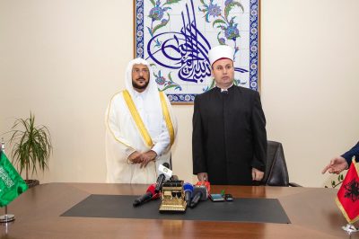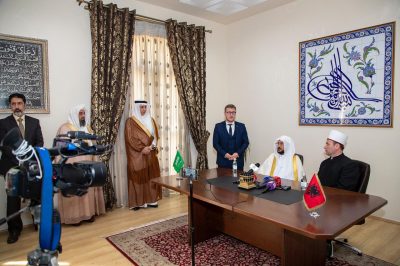 من ناحيته أكد رئيس المشيخة الإسلامية بويار سباهيو، أن البرنامج التنفيذي للمذكرة الذي وقع اليوم هو خارطة طريق لإظهار وإبراز القيم الإسلامية والإنسانية هنا في ألبانيا وفي كل مكان، مقدمًا شكره وتقديره للمملكة وقيادتها الرشيدة على جهودها في مساندة ألبانيا.