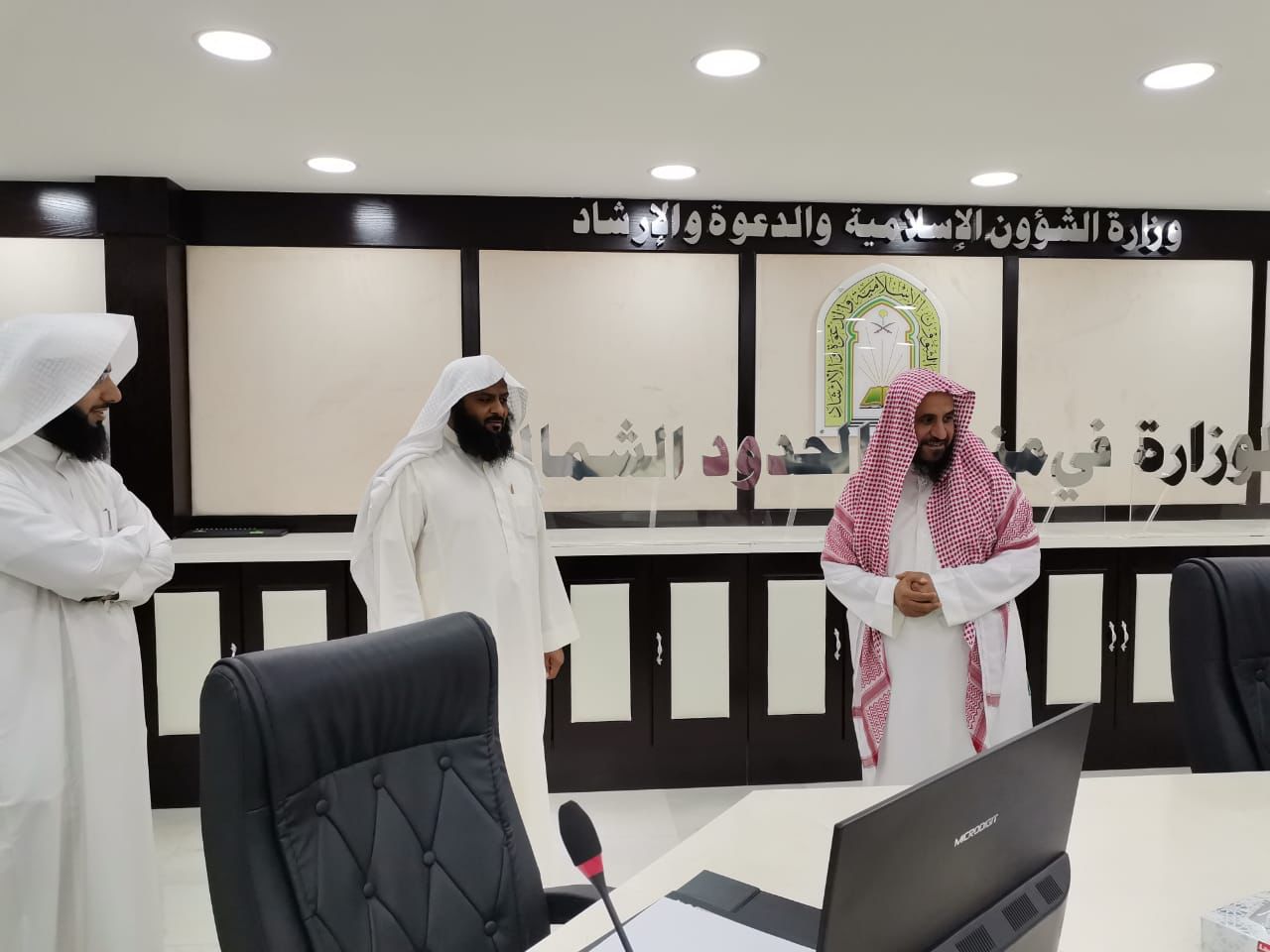 استقبل فضيلة مدير عام فرع وزارة الشؤون الإسلامية والدعوة والإرشاد الشيخ مطارد بن دخيل العنزي اليوم الخميس الموافق 1443/3/22هـ مدير معهد الأئمة والخطباء بالوزارة الشيخ عيسى بن أحمد كاملي