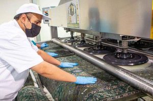 وأضاف أن المغسلة تحتوي على معمل جهز بأحداث الآلات لصيانة السجاد من التلف، ليتم إعادة تأهيل السجاد وإعادته لما كان عليه، وكما يوجد داخل المسجد الحرام ماكينات لغسل السجاد بشكل مباشر وعاجل إضافة إلى كنسه وتنظيفه وتعقيمه على مدار الساعة من خلال فرق متخصصة تقوم بترتيب السجاد ليكون اتجاهه إلى القبلة.
