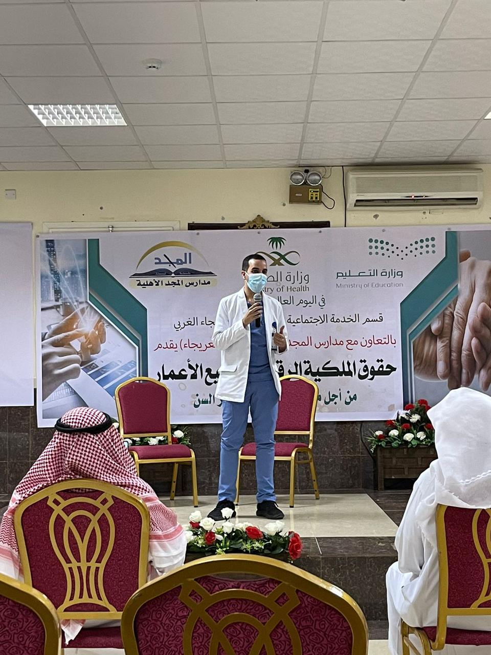 شاركت الجمعية الأهلية لخدمة كبار السن “كبار” بركن تعريفي بمدارس المجد الأهلية القسم الثانوي بحي العريجا وذلك بهدف الوصول لأكبر شريحة من المجتمع للتعريف بأهدافها بالتعاون مع قسم خدمة المجتمع بالمركز الصحي بحي العريجاء الغربي