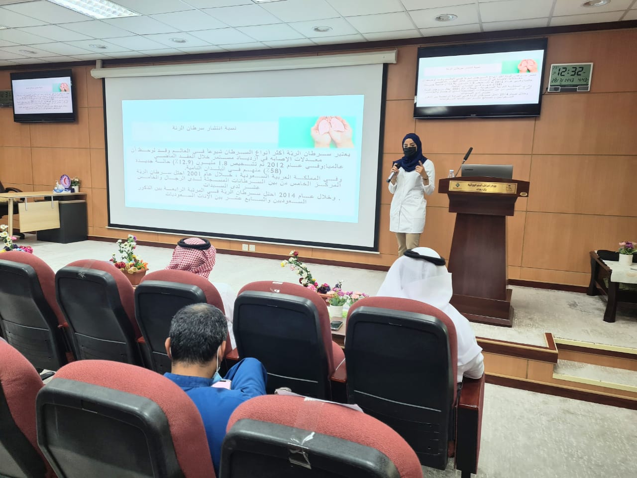 تفاعلا مع شهر التوعية عن سرطان الرئة، قام مركز امراض الدم الوراثية متمثلا بقسم التدريب و التوعية الصحية و بالتعاون مع إدارة الرعاية الصحية الأولية بتفعيل نشاط تثقيفي و توعوي بهذه المناسبة، حيث شملت الفعاليات محاضرة القتها اخصائية طب الاسرة الدكتورة فاطمة بنت حسين الخواجة تطرقت فيها عن تعريف المرض، وعوامل الخطورة التي تزيد مع احتمالية الاصابة به، و العلامات و المضاعفات وطرق الوقاية و العلاج، كما شددت في محاضرتها على اهمية الابتعاد عن السلوكايات الخاطئة المسببة لمرض سرطام الرئة ومن اهمها التدخين. وشهدت المحاضرة اقبالا كبيرا من موظفي و موظفات المركز بالاضافة إلى المراجعين و المرضى، و في ختامها عملت حلقة نقاش للاجابة على اسئلة واستفسارات الحضور.