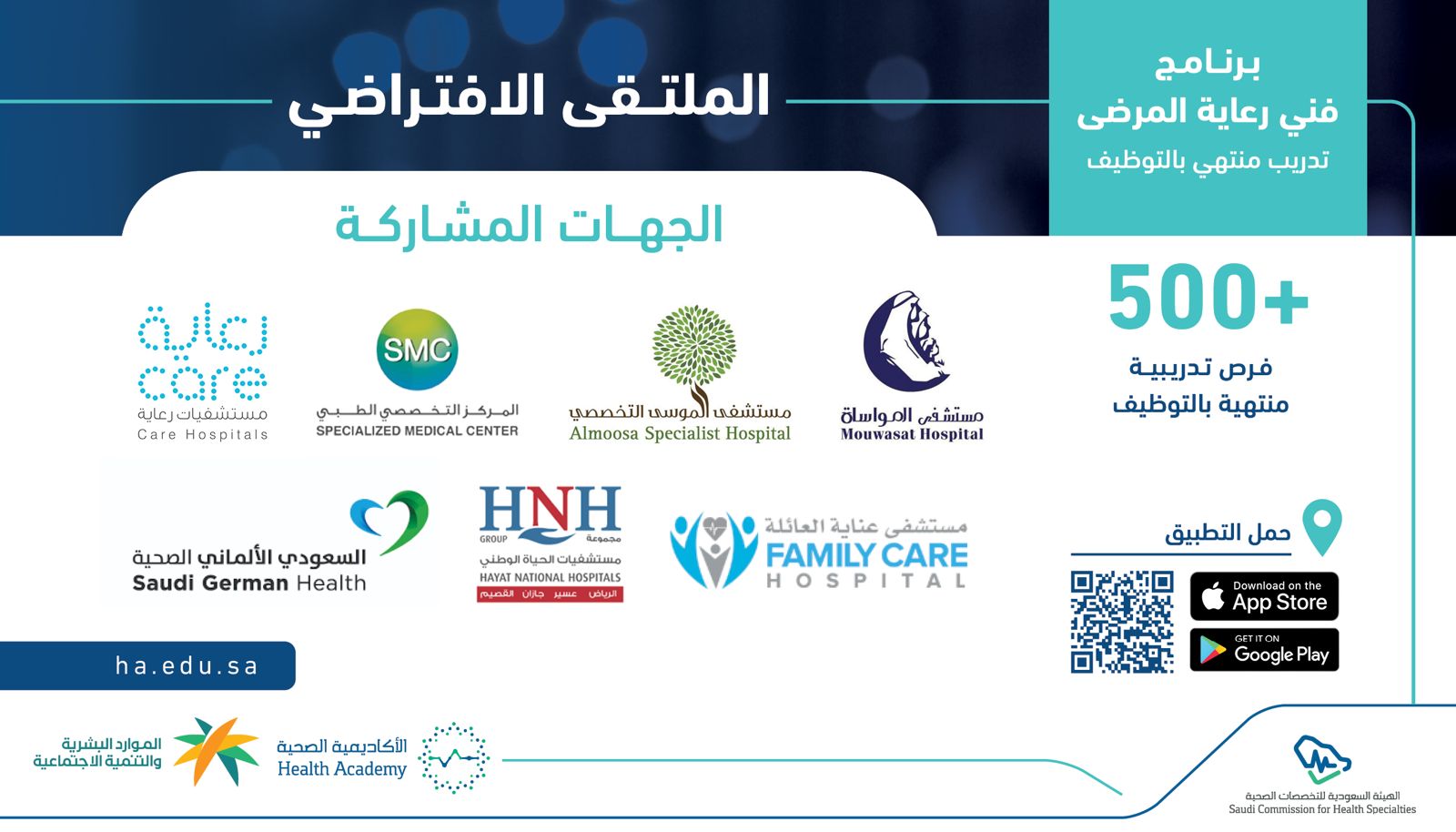 أكثر من 500 شاغر تدريبي منتهي بالتوظيف في ملتقى برنامج فني رعاية المرضى