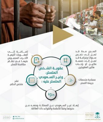 قالت النيابة العامة في حسابها على تويتر إن التستر -التجاري- جريمة تصل عقوباته إلى السجن (٥) سنوات وغرامة (٥) ملايين ريال، مع حل المنشأة، وشطب السجل التجاري، وإبعاد المدان غير السعودي عن المملكة ومنعه من دخولها، ومنع المدان من ممارسة النشاط الاقتصادي لمدة خمس سنوات.