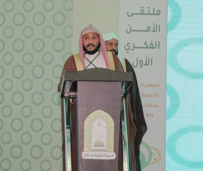 افتتح معالي وزير الشؤون الإسلامية والدعوة والإرشاد الشيخ الدكتور عبداللطيف بن عبدالعزيز آل الشيخ مساء يوم أمس الأربعاء ، ملتقى الأمن الفكري الأول لجمعيات الدعوة والتحفيظ والخطباء، الذي ينظمه فرع الوزارة بمنطقة جازان ، وذلك بفندق راديسون بلو بمدينة جيزان، بحضور وكلاء الوزارة وكبار المسؤولين وجمع من أصحاب الفضيلة القضاة و الدعاة والأئمة والخطباء وروساء الجمعيات الدعوية والتحفيظ بالمنطقة.