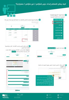 منصة مدرستي توضح خطوات إعداد درس متزامن أو غير متزامن أو معياري.