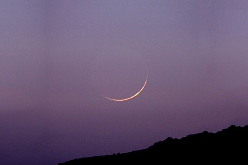 القمر سيكون ابتعد عن وهج شمس الغروب وأصبح مرتفعا في السماء مقارنة بالليلة الماضية وظهر النور على سطحه وخلال بضعة ليالي سيلاحظ أن الجانب الغير مضاء من سطح القمر مضاء بنور خافت عبارة عن ضوء الشمس المنعكس عن الأرض والساقط على القمر.