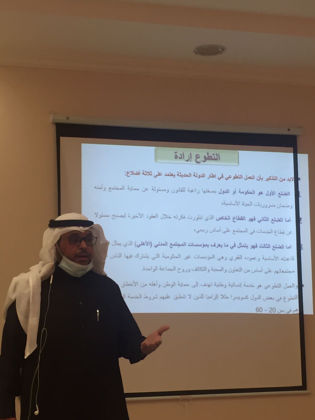 نظمت دار الملاحظة الاجتماعية بحفر الباطن لقاء بعنوان ثقافة التطوع ( ارادة وريادة ) وذلك بمناسبة يوم التطوع السعودي والعالمي 5 ديسمبر قدمها عضو هيئة التدريس ومدير مركز الارشاد الجامعي بجامعة حفر الباطن ورئيس مجلس إدارة مساند للخدمات النفسيه والاجتماعية وذلك بحضور مدير الدار الاستاذ / فهد بن مناحي الشمري ومدير وحدة الخدمات المساندة للاشخاص ذوي الاعاقة بحفر الباطن الاستاذ سعود فهد الشمري ومنسوبي الدار حيث تطرق المحاضر للتطوع واهدافه ومدى تحقيق التعاون بين افراد المجتمع وكيفية الاستفادة من الفرص التطوعية وفي نهاية اللقاء قدم مدير الدار شكره وتقديره للدكتور سلمان السبيعي على التعاون الايجابي الذي تقدمه الجامعة من خلال دعمها ومساندتها لما فيه خدمة المجتمع