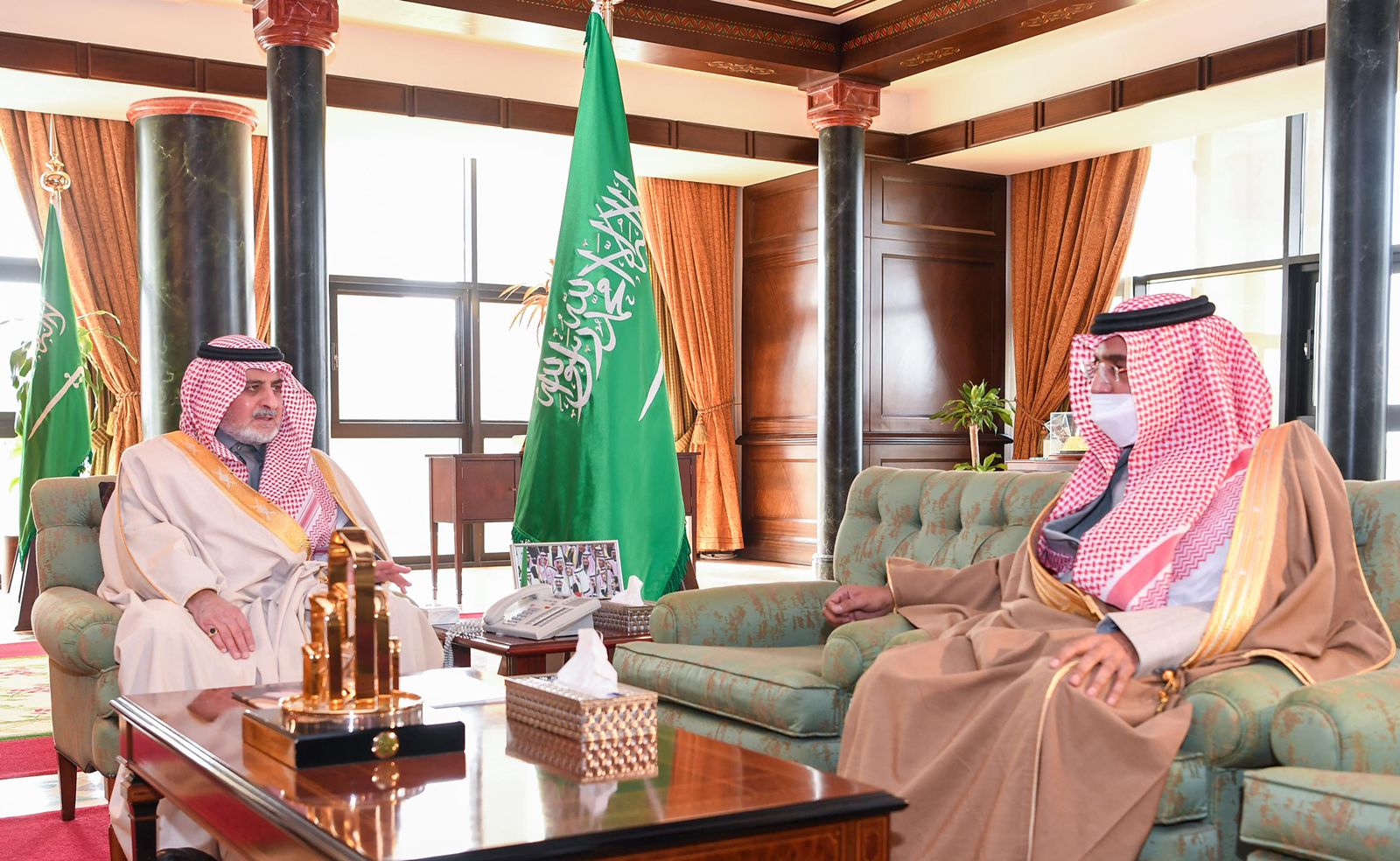 التقى صاحب السمو الملكي الأمير فهد بن سلطان بن عبدالعزيز أمير منطقة تبوك رئيس مجلس إدارة جمعية الملك عبد العزيز الخيرية بمكتبه بالإمارة اليوم ، المشرف العام على مدارس الملك عبدالعزيز النموذجية بالمنطقة إبراهيم بن حسين العُمري ، وأطلع سموه خلال اللقاء على تقرير عن سير العملية التعليمية بالمدارس وكذلك تقارير مؤشرات الأداء للمدارس ونواتج التعلم بها والخطط المستقبلية للتطوير والتوسع في أعمالها التعليمية مؤكداً سموه على أهمية التكامل بين المدرسة والمنزل ، ونوه الأمير فهد بن سلطان بما يحظى به قطاع التعليم في المملكة من دعم واهتمام من خادم الحرمين الشريفين الملك سلمان بن عبدالعزيز آل سعود, وسمو ولي العهد -حفظهما الله- متمنيا سموه للكادر التعليمي والطلاب والطالبات والأسر الكريمة المزيد من التوفيق والنجاح.