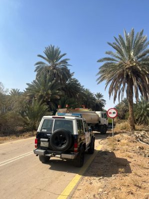باشرت فرق الدفاع المدني بمحافظة دومة الجندل بلاغاً هذا اليوم الجمعة الموافق ١٤٤٣/٨/١٥هـ عبارة عن حريق عدد (مائة وستون ) نخلة منها (خمسة وأربعون )مثمرة والباقي مهمل بعدة مزارع بواحة النخيل بمساحة إجمالية بلغت تقريباً