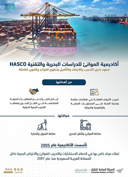 يذكر أن أكاديمية الموانئ للدراسات البحرية والتقنية “HASCO” تأسست في عام 2005م، وتملك ميناء خاص بها في الدمام، للاستشارات والتدريب للموانئ والأغراض البحرية داخل المملكة منذ عام 2007م، ويهدف إلى تدريب الكوادر العاملة في قطاعات صناعة وتجارة النفط على المستويات المحلية والإقليمية والدولية.