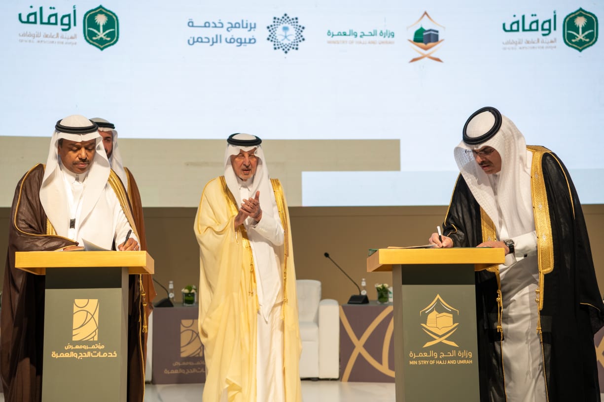 جرت مراسم توقيع مذكرة التعاون ضمن فعاليات مؤتمر ومعرض خدمات الحج والعمرة المقام في محافظة جدة برعاية صاحب السمو الملكي الأمير خالد الفيصل مستشار خادم الحرمين الشريفين أمير منطقة مكة المكرمة، ومثّل وزارة الحج والعمرة معالي نائب الوزير الدكتور عبدالفتاح بن سليمان مشاط، ومثّل الهيئة العامة للأوقاف سعادة محافظ الهيئة الأستاذ عماد بن صالح الخراشي.