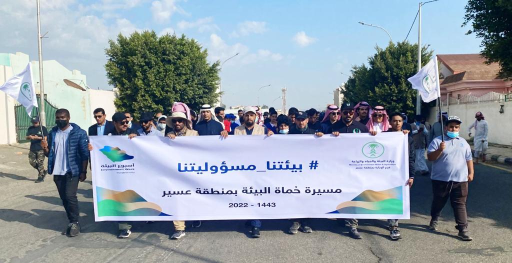 من جهته أوضح المدير العام لفرع وزارة البيئة والمياه والزراعة بمنطقة عسير المهندس عبدالله الويمني ان فعاليات أسبوع البيئة تحظى بأهتمام ومتابعة كريمة من سمو أمير منطقة عسير, لما للبيئة من أهمية في حياة الفرد والمجتمع، مؤكدا على أهمية دور المؤسسات والجهات وجميع شرائح المجتمع للإسهام في حماية البيئة، وترسيخ مفاهيم الوعي حول المخاطر التي تهدد البيئة، وتعزز سبل حمايتها، ونشر ثقافة الحفاظ على البيئة لكونها ركناً أساسياً في المجتمعات السليمة.