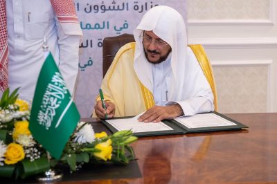وقع معالي وزير الشؤون الإسلامية والدعوة والإرشاد الشيخ الدكتور عبداللطيف بن عبدالعزيز آل الشيخ، مع نظيره وزير الشؤون الدينية والعبادة بجمهورية مالي الدكتور / محمدو كوني البرنامج التنفيذي لمذكرة التفاهم الموقعة بين وزارة الشؤون الإسلامية والدعوة والإرشاد ووزارة الشؤون الدينية والعبادة ، وتم التوقيع امس الثلاثاء 19 / 8 / 1443هـ بمكتب معاليه بمدينة جدة بحضور عدد من المسؤولين من الجانبين، ووسائل الإعلام المختلفة.