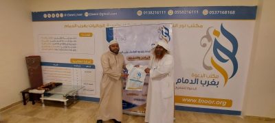 اختتمت جمعية الدعوة والإرشاد وتوعية الجاليات بغرب الدمام “نور” يوم السبت الماضي البرنامج الخاص للدعاة من الجاليات الاردية والهندية والفلبينية والبنجلاديشية والتي تستهدف “تأهيل وإعداد الدعاة المتعاونين” والذي اشتمل على محاضرات في منهج الأنبياء في الدعوة الى الله واستفاد من البرنامج (25) داعية من الجاليات الهندية والفلبينية والبنغالية بإشراف من قسم الجاليات والدعاة الرسمين بالجمعية.