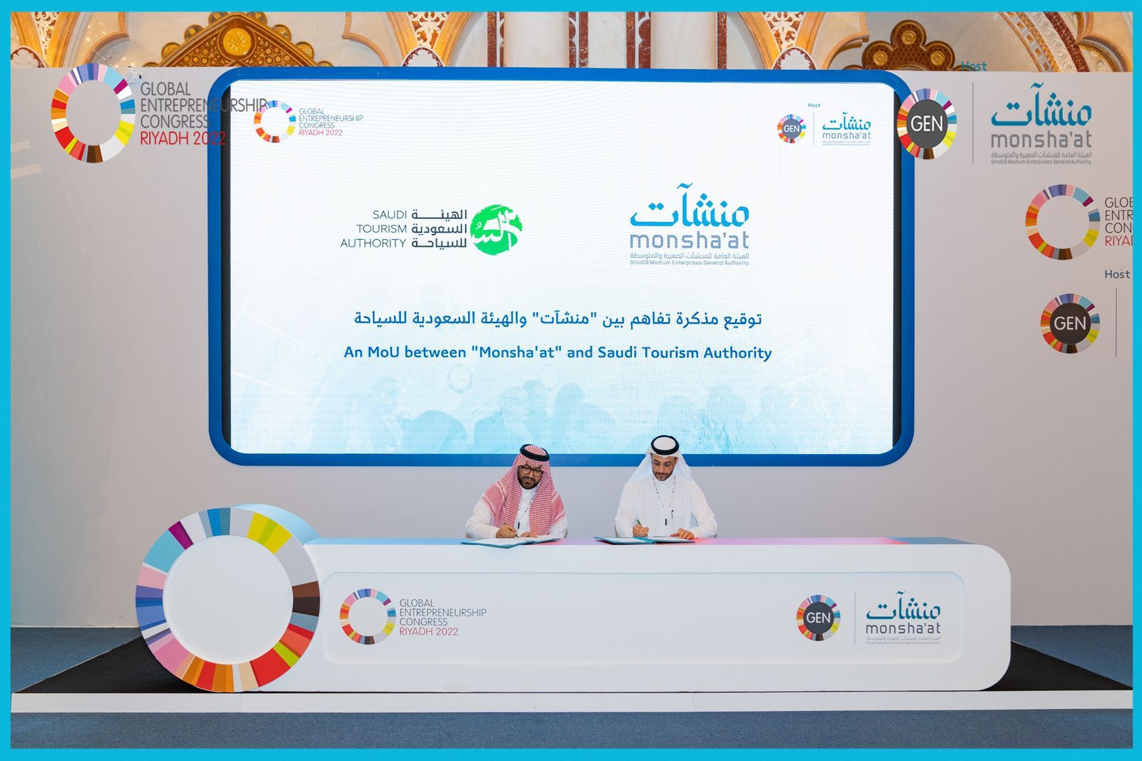 الرياض – 28 مارس: أبرمت الهيئة السعودية للسياحة والهيئة العامة للمنشآت الصغيرة والمتوسطة (منشآت) مذكرة تفاهم؛ تستهدف رفع مساهمة المنشآت الصغيرة والمتوسطة بالقطاع السياحي من خلال إطلاق البرامج والمبادرات والحملات الإعلامية المشتركة، بالإضافة إلى تنظيم الملتقيات والمعارض، وتم ذلك على هامش المؤتمر العالمي لريادة الأعمال (GEC)، الذي تحتضنه الرياض في مركز الملك عبد العزيز الدولي للمؤتمرات، خلال الفترة من 27 وحتى 30 من مارس الجاري.