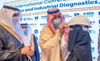 جاء ذلك خلال رعاية سموه بالمدينة الجامعية اليوم، حفل افتتاح المؤتمرين اللذين تنظمهما جامعة حائل، بعنوان المؤتمر الدولي الخامس لإلكترونيات القوى وتطبيقاتها، والمؤتمر الدولي الرابع للأتمتة التطبيقية والتشخيص الصناعي، بحضور وكيل إمارة منطقة حائل عادل بن صالح آل الشيخ .