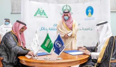 بعدها شهد سمو أمير منطقة حائل مراسم توقيع مذكرة تفاهم بين أمانة المنطقة مثلها أمين المنطقة المهندس سلطان الزايدي، وجامعة حائل ومثلها رئيس الجامعة، وذلك لتأطير مجالات ومشاريع ومبادرات الجهتين .