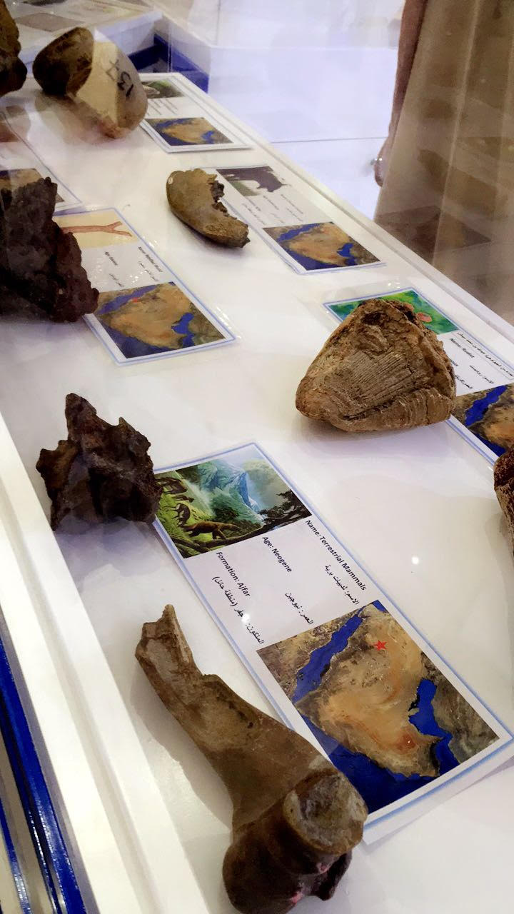 يعكس اهم أعمال الهئية ومهامها الفنية وإنجازاتها وآخر الإكتشافات التي تم العثور عليها في صحراء النفوذ.وأكد معالي رئيس الهيئة بأن هذه الفعاليات ضمن سلسلة من النشاطات التي قررت الهيئة تنظيمها في جميع أنحاء المملكة خلال الفترة القادمة..وأوضح معالية أن المعرض سلط الضوء على الأعمال الفنية والجيلوجية التي تقوم بها الهيئة من خلال عدة اجنحة ومنها جناح الأحافير الذي يعرض أهم الإكتشافات التي تم الوصول اليها في منطقة النفوذ الكبير ،حيث تم إكتشاف أحافير وثديات برية يصل عمرها مابين ٦٠٠الف مليون عام مضت .وتم عرض (عضد ) و( فك سفلي ) والعديد من الأجزاء المكتشفة. أيضاً تضمنت الفاليات عرض مرئي عن النشاط الزالزالي والبركاني في المملكة وتوزيع محطات الشبكة الوطنية للرصد الزلزالي وكيفية تسجيل الهزات الأرضية،وتقديم بعض الأمثلة لهذة الأجهزة.كما تضمن العرض مجسم بركاني يوضح الشكل الحقيقي لأهم الفوهات البركانية في المملكة ..بحيث يستطيع الزائرين الإطلاع على كل العروض مباشرةً وينقلهم هذا المشهد الى تلك الحقبة الزمنية بطبيعتها القديمة…