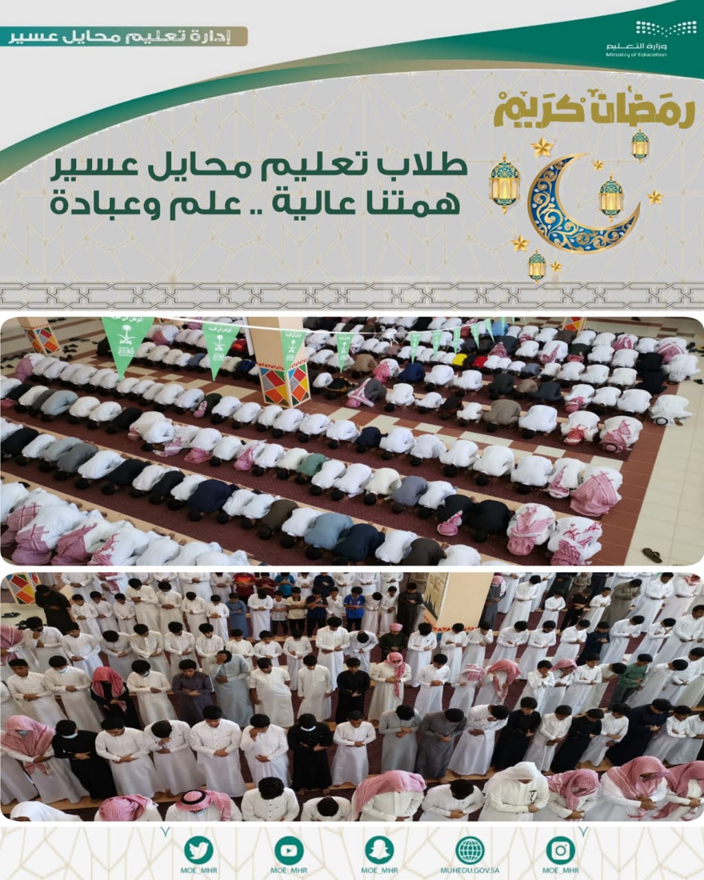 فيما أظهرت التغطيات الإعلامية اليومية عبر الحسابات الرسمية للإدارة ومكاتب التعليم والمدارس الانطلاقة والبداية الجادة للطلاب والطالبات لكافة المراحل الدراسية في أجواء إيجابية وإيمانية جمعت بين العلم والعبادة بهمة عالية وروحانية في تأدية صلاة الظهر جماعة في مدارسهم ، طاعة وعبادة إلى جانب العلم والدراسة بالانتظام داخل الفصول وتفاعلهم مع الحصص الدراسية بهمة عالية ، يصاحب ذلك البث المباشر اليومي عبر سناب شات تعليم محايل عسير الرسمي MOE_MHR.